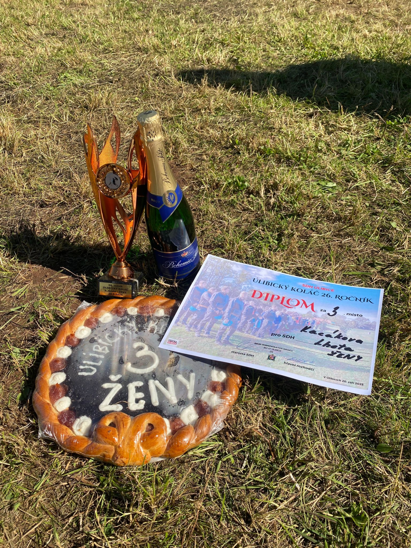 V sobotu 20.9.2025 se dobrovolní hasiči z našeho sboru zúčastnili 26. ročníku Úlibického koláče. Náš sbor i obec reprezentovali Jandová Vlasta, Krausová Péťa, Drapáková Karolínka, Drapáková Pavla, Hreha Jan a Pokorný Aleš. Soutěžili v kategorii žen a umístili se na krásném 3. místě z celkového počtu 6 startujících družstev. V mužské kategorii soutěžilo 12 týmů. Podpořit Kacandu přijelo i pár fanoušků z Kacákovy Lhoty a okolí. Atmosféra byla skvělá, přátelská a výkony soutěžících i počasí bylo úplně ukázkové.